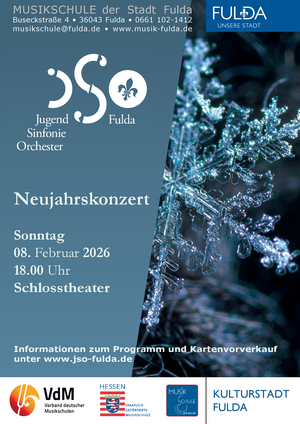 Erleben Sie das Jugendsinfonieorchester Fulda unter der Leitung von Martin Klüh beim traditionellen Jahreskonzert im Schlosstheater Fulda mit atemberaubenden Meisterwerken von Schubert, Mussorgsky, Prokofiev, Humperdinck und Nyman. Karten sind zum Preis von 15 €/ermäßigt 12 € in der Geschäftsstelle der Fuldaer Zeitung, Frankfurter Straße 8, in der „Heimatliebe“, Steinweg 26, sowie an der Abendkasse erhältlich.