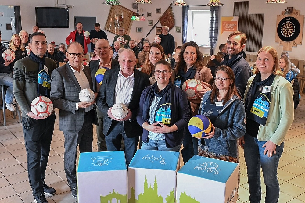 FULDA 01.04.2026. Fairtrade und Sport – das ist eine Kombination, die auf den ersten Blick kaum Berührungspunkte zu haben scheint. Und doch kann auch der Sport einen Beitrag zum Thema fairer Handel und faire Produktionsbedingungen für Sportartikel leisten. Dieser Zusammenhang wurde im Rahmen der Rezertifizierung der Stadt Fulda zur „Fairtrade-Stadt“ im vergangenen Jahr innerhalb der Arbeitsgruppe „Faires Fulda“ des Agendabüros intensiv diskutiert – und wird jetzt auch mit Händen greifbar: Bürgermeister Dag Wehner übergab in seiner Funktion als Sportdezernent 100 Bälle an Sportvereine der Region, und alle diese Fuß-, Hand- oder Volleybälle stammen aus fairer Produktion. Federführend bei der Aktion war das Umweltzentrum Fulda.