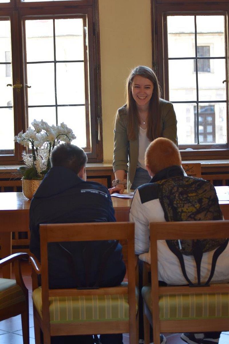 Eine Präsentation der städtischen Auszubildenden und Studierenden sowie ein interaktives Quiz boten den Jugendlichen erste Einblicke in die verschiedenen Fachämter und deren Aufgaben. Anschließend ging es für die Teilnehmerinnen und Teilnehmer in die Praxis: In den Räumen des Stadtschlosses sowie in den Außenstellen der Stadtverwaltung konnten sie den Berufsalltag in unterschiedlichen Bereichen erleben. Im Amt für Straßenverkehr und Parken, der Tourist- Information, dem Bürgerbüro oder dem Bauordnungsamt gab es ebenso viel zu entdecken wie im Grundstücks- und Vermessungsamt.
