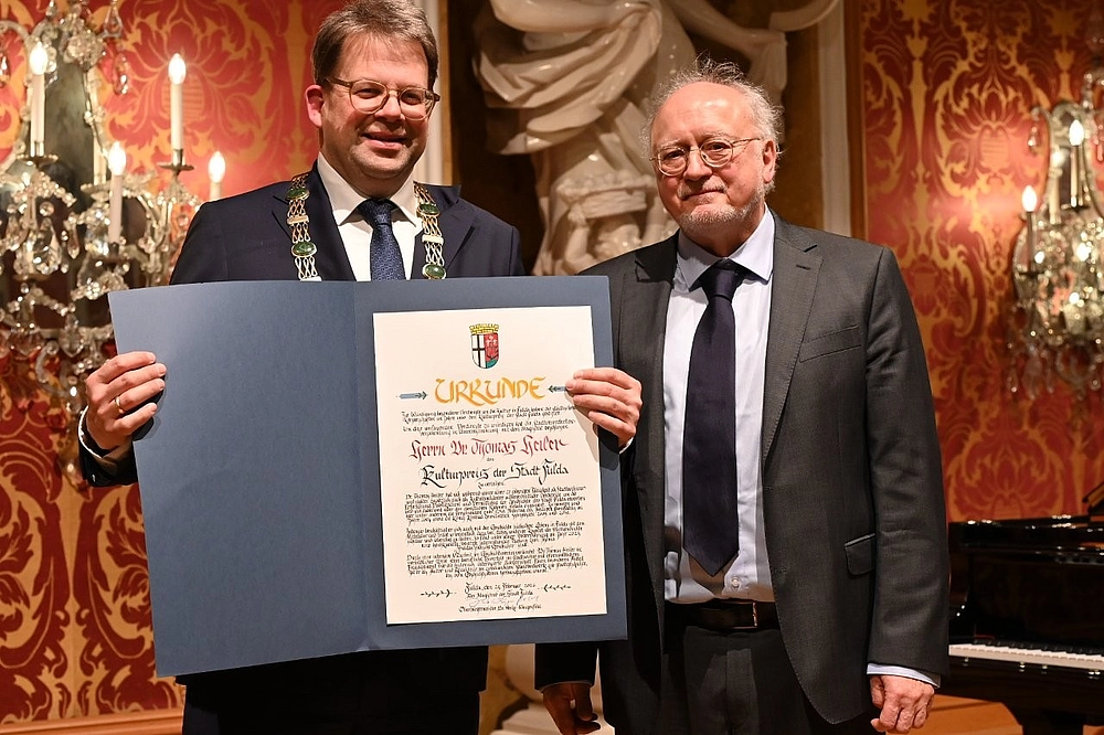 „Dr. Thomas Heiler hat sich während seiner über 27-jährigen Tätigkeit bei der Stadt Fulda außerordentliche Verdienste um die Erforschung, Publikation und Vermittlung der Geschichte der Stadt Fulda erworben“, betonte Oberbürgermeister Dr. Heiko Wingenfeld. Dabei habe er sich weit über den dienstlichen Rahmen hinaus engagiert. „Seine besondere Gabe besteht darin, fundiert recherchierte geschichtliche Ereignisse und Zusammenhänge für ein breites Publikum spannend und unterhaltsam aufzubereiten. Ich möchte hier nur an seine Bildbände mit historischen Fotografien, seine Schlaglichter zur Stadtgeschichte oder seine fesselnden Vorträge wie etwa den zum Aschenberg erinnern.“