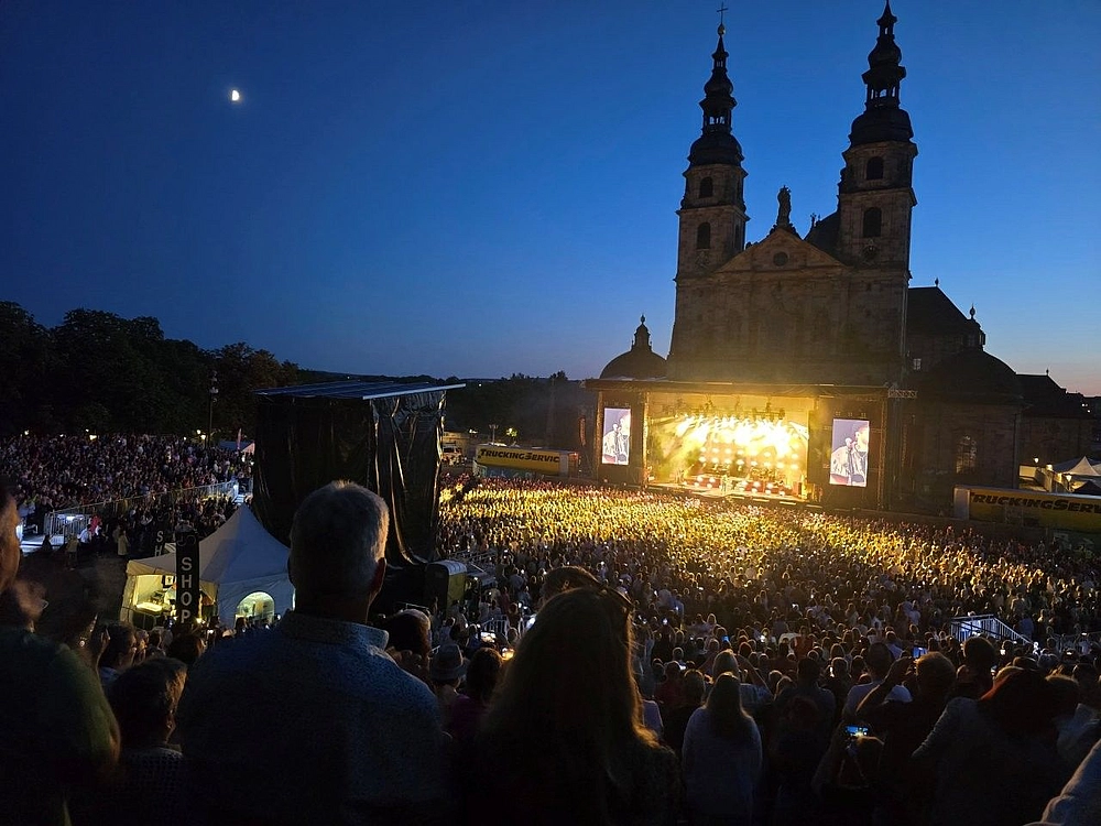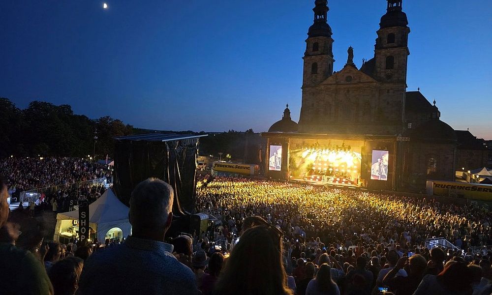 FULDA, 11. JULI 2025: Herausragende Künstlerinnen und Künstler, eine einzigartige Atmosphäre vor barocker Kulisse und ein begeisterungsfähiges Publikum: Das sind die Zutaten, die die Fuldaer Domplatzkonzerte seit fast drei Jahrzehnten zu einer Erfolgsmarke machen. Und auch für das Jahr 2025 haben die Verantwortlichen bei der Stadt Fulda kurz vor dem diesjährigen Finale der Eventserie eine erfolgreiche Bilanz gezogen: Obwohl es 2025 einen Act weniger gab als im vergangenen Jahr, wurde mit knapp 60.000 Besucherinnen und Besuchern die Rekordzahl von 2024 (65.000) fast wieder erreicht. Im Durchschnitt waren pro Konzert rund 8500 Gäste auf dem Domplatz – ein Spitzenwert!