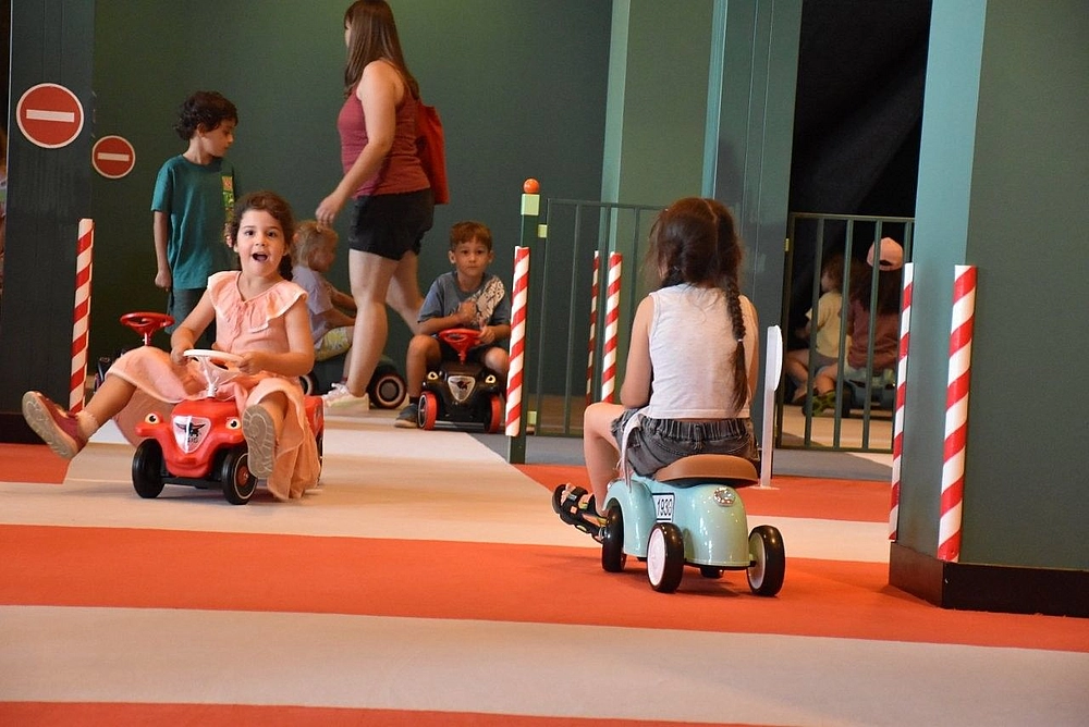 FULDA, 15. August 2025: Mit einem bunten Festakt wurde heute das neue Angebot der Kinder-Akademie Fulda (KAF) im 3. Obergeschoss des ehemaligen Kaufhofs eröffnet. „KAF im KARL“ richtet sich an Familien mit Kindern ab zwei Jahren. In den Räumen können Erwachsene und Kinder gemeinsam Stationen zum Thema „Sinne“ – Sehen, Hören, Schmecken, Fühlen und Riechen – entdecken. Zu den Attraktionen gehören eine Schwarzlicht-Minigolf-Anlage und ein Bobbycar-Parcours mit verschiedenen Fahrzeugen.