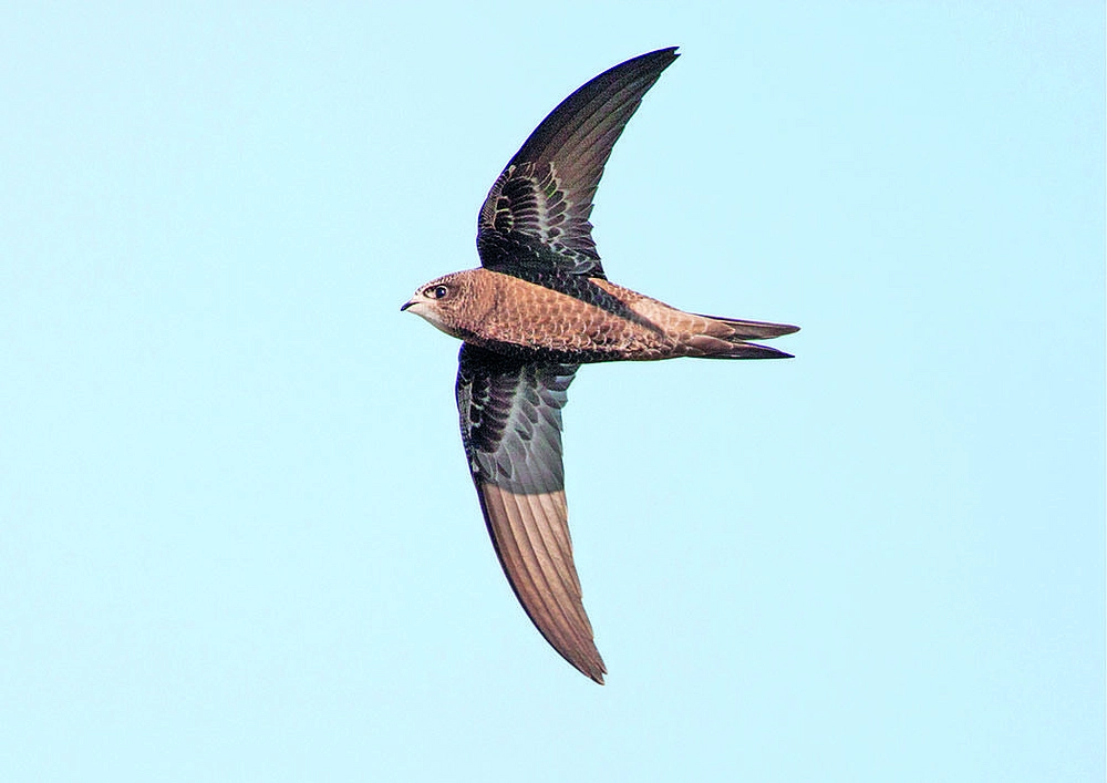 Der Mauersegler ist ca. 18 cm groß und besitzt ein durchgehend dunkelbraunes bis ruß-schwarzes Gefieder mit einer kontrastierend hellen Kehle. Seine langen, sichelförmigen Flügel und der gegabelte Schwanz verleihen ihm eine charakteristische Silhouette im Flug. Er gleitet häufig elegant durch die Luft und landet nur selten – er verbringt den Großteil seines Lebens in der Luft.