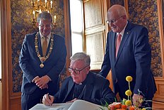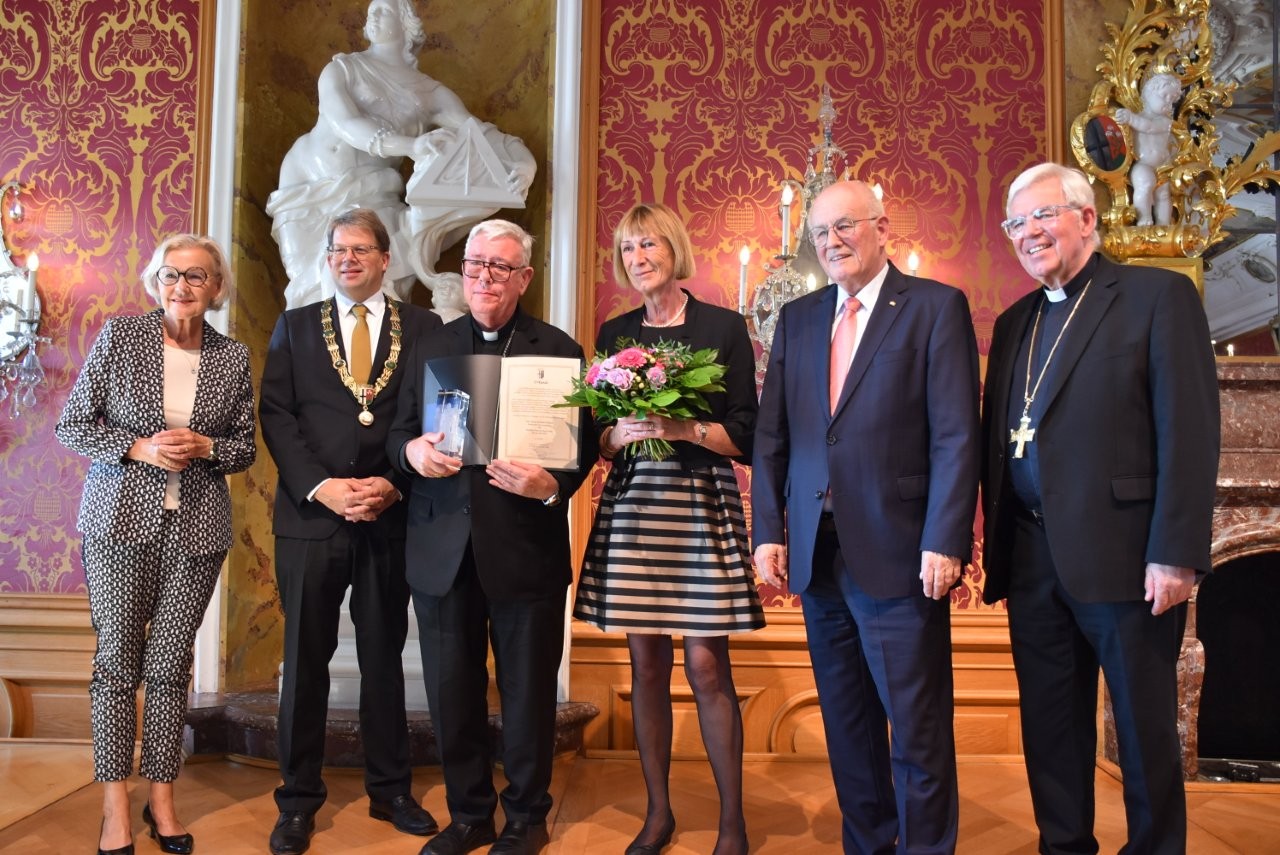 Bei der Begrüßung hieß Fuldas Oberbürgermeister Dr. Heiko Wingenfeld den Erzbischof Jean-Claude Hollerich und alle weiteren Gäste im Fürstensaal des Stadtschlosses herzlich willkommen. Er hob das herausragende Engagement des Preisträgers hervor und lobte seinen dynamischen sowie zukunftsorientierten Blick auf die Kirche und Europa. In seinen Augen steht der Preisträger Jean-Claude Hollerich für die Idee der Ermutigung, der Neubesinnung und der Erneuerung: „Für Ihr fortwährendes Eintreten für europäische und internationale Solidarität sind Sie ein Vorbild im Sinne des Winfriedpreises."