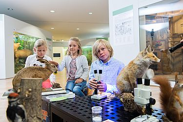 An 6 Forschungsstationen mit Igel, Eichhörnchen, Fuchs, Maulwurf, Buntspecht und Feldhase wird nicht nur Grundschülerinnen und -schülern im Klassenverband, sondern auch Eltern mit Kindern die Möglichkeit eröffnet, einen beliebten Teilbereich des Museums eigenständig und interaktiv mit möglichst vielen Sinnen sowie mit Freude am Entdecken und Beobachten kennenzulernen.