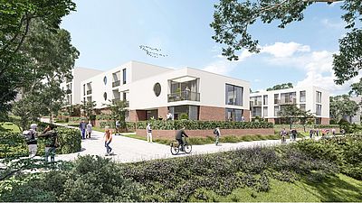 Insgesamt entstehen 69 barrierefreie Wohnungen, davon sind 22 gefördert: