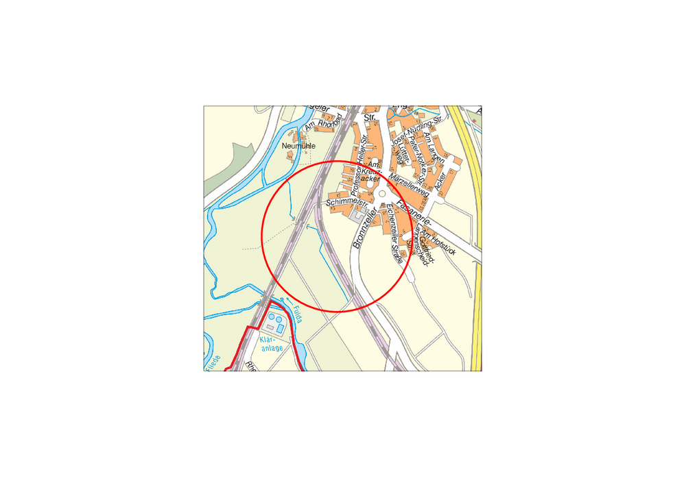 Aufgrund der Lärmimmissionen, verursacht durch die angrenzende Bahnstrecke, die Bronnzeller Straße sowie den angrenzenden gewerblichen Betrieb, wurde eine schalltechnische Untersuchung beauftragt. Die dort vorgeschlagenen Maßnahmen zur Minderung der Lärmeinwirkungen innerhalb der Wohngebäude wurden als Festsetzungen in den Bebauungsplan übernommen.