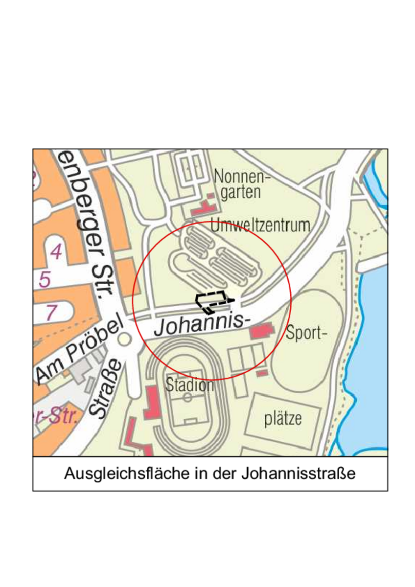 Der Geltungsbereich der externen Ausgleichsfläche in der Johannisstraße umfasst einen Teilbereich des Flurstücks 331/4 der Flur 5 in der Gemarkung Neuenberg mit einer Fläche von etwa 323 m².