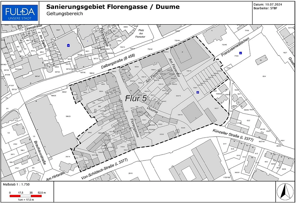 Aufgrund der §§ 5 und 51 Nr. 6 der Hessischen Gemeindeordnung (HGO) in der Fassung der Bekanntmachung vom 7. März 2005 (GVBl. I S. 142) zuletzt geändert durch Artikel 2 des Gesetzes vom 16. Februar 2023 (GVBl. S. 90) und § 162 Baugesetzbuch (BauGB) in der Fassung der Bekanntmachung vom 3. November 2017 (BGBl. I S. 3634) zuletzt geändert durch Artikel 3 des Gesetzes vom 20. Dezember 2023 (BGBl. 2023 I Nr. 394) hat die Stadtverordnetenversammlung der Stadt Fulda in ihrer Sitzung am 01. Juli 2024 den Abschluss der Sanierung folgende Satzung beschlossen: