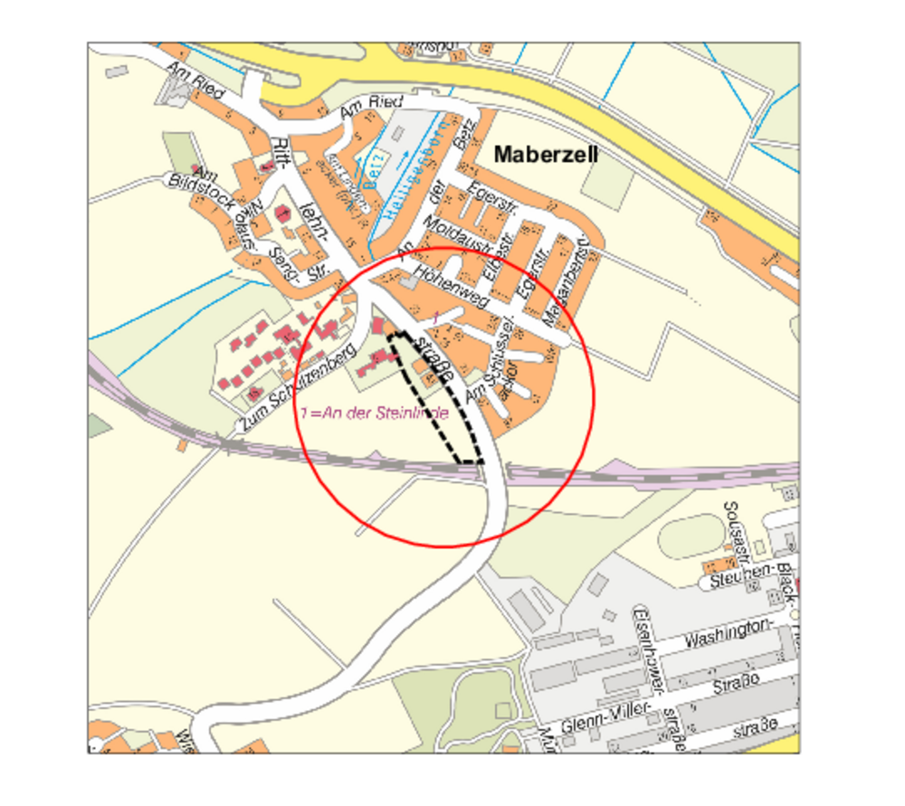 Im Stadtteil Maberzell bietet sich die Möglichkeit südwestlich der Ortsdurchfahrt Rittlehnstraße den bereits teilweise bestehenden Siedlungsrand zu ergänzen und damit in Abstimmung zum gegenüberliegenden Baugebiet „Am Schlüsselacker“ sinnvoll mit ein- und zweigeschossigen Baukörpern als Einzel- oder Doppelhäuser zu arrondieren. Der Wohnbedarf an Eigenheimen mit Gartenanteilen ist weiter gegeben, nachdem letztmalig im Jahr 2016 an der Domäne im Zentrum des Ortsteils Maberzell ein Baugebiet erschlossen wurde. Mit der Arrondierung wird auch der vorbereitenden Planung des Flächennutzungsplans entsprochen, welcher für diese Flächen bereits Wohnbauflächen im großen Umfang ausweist.