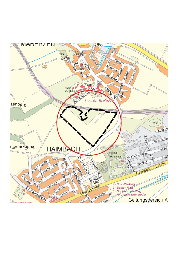 Der Geltungsbereich A liegt zwischen Haimbach und Maberzell an der Bahnstrecke Gießen – Fulda und umfasst in der Gemarkung Maberzell, Flur 16, die Flurstücke 6/6, 6/7, 6/9, 6/13, 10/2, 11/4, 107/6 und 21/3 (teilweise) mit einer Gesamtgröße von rund 16,16 ha.