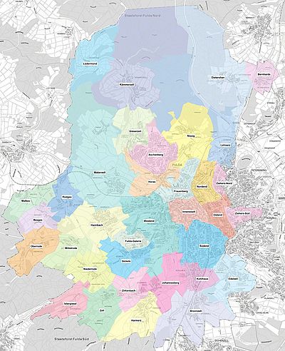 Das Stadtgebiet Fulda ist in 35 Statistische Bezirke aufgeteilt, davon sind 24 Stadtteile (lt. HGO).