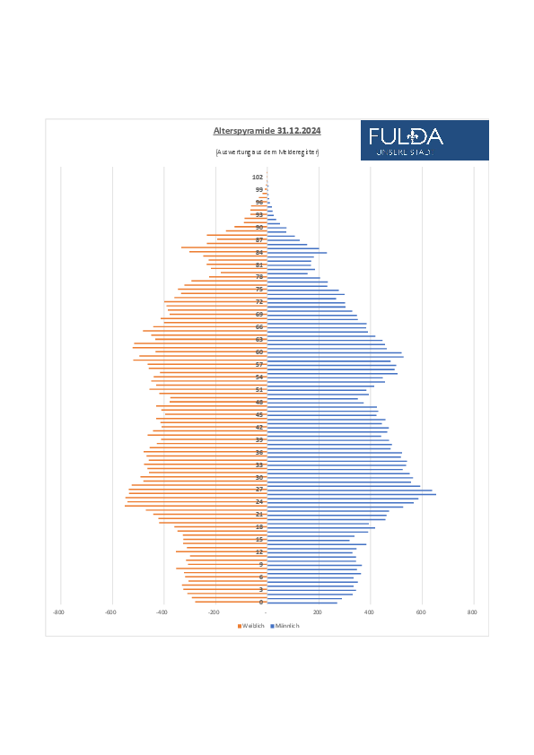 Die Statistikstelle im Bürgerbüro der Stadt Fulda sammelt und bereitet statistisch relevante Daten auf. Auf dieser Seite werden die ausgewerteten Daten als statistische Informationen veröffentlicht.
