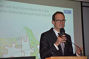 Aus den ursprünglich neun Bewerbungen war eine Arbeitsgemeinschaft aus drei Büros ausgewählt worden, deren Aufgabe Roman Bonzel von der Städtebauförderung als „qualifiziertes Meckern“ bezeichnete. „Zu meckern gibt es gar nicht so viel, denn Fulda ist wirklich eine wunderschöne Stadt. Aber natürlich kann man immer Punkte finden, an denen es Verbesserungspotential gibt oder die im Hinblick auf zukünftige Entwicklungen optimiert werden können“, erklärte Dr. Katrin Korth (StadtRaumStrategien), die zusammen mit Susanne Hirzler (Büro Freiraum + Landschaft) und Prof. Dr. Philipp Dechow (ISA Internationales Stadtbauatelier) die Ergebnisse der gemeinsamen Arbeit vorstellte. Ziel aller Überlegungen sei es, die Stadt und die Landschaft weiterzuentwickeln, indem die Nutzung bestimmter Bereiche wie der Fulda-Aue verbessert werde, bessere und neue Übergänge und Verbindungen geschaffen sowie Straßenräume menschenfreundlich und umweltgerecht gestaltet werden.