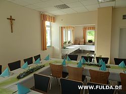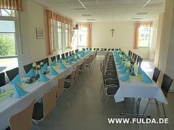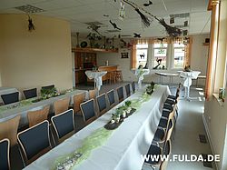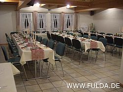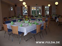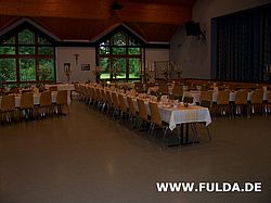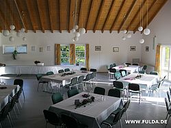 Das kleine Bürgerhaus im Fuldaer Stadtteil Rodges bietet ein rustikales Ambiente, und ist aufgrund seiner kompakten Bauart für Familienfeiern bis zu 40 Personen (bestuhlt) bestens geeignet. Unmittelbar neben dem Gebäude befindet sich ein Kinderspielplatz. Zu erreichen ist das Haus von Fulda kommend über die B 254 Richtung Lauterbach, Ausfahrt Industriepark Fulda-West oder über den Westring.