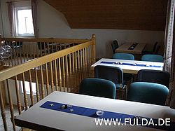Das Bürgerhaus im typischen Rhöner Fachwerkstil befindet sich im Stadtteil Fulda-Zirkenbach. Der gemütliche, nach oben offene Saal wird von einer in hellem Holz gehaltenen Galerie umschlossen. Die Galerie kann mit Tischgruppen bestückt genutzt werden. Das Haus eignet sich besonders für kleinere Gesellschaften bis zu 50 (bestuhlt) Personen. Zu erreichen ist es von Fulda kommend über den Stadtteil Kohlhaus, Richtung Johannesberg nach Zirkenbach, direkt an der Zirkenbacher Straße/Ecke Röderkreuzweg.