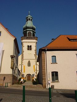 Teil des Ensembels wurde die um 1500 neu erbaute Kirche. Der spätgotische Bau wurde im 17. und 18. Jahrhundert barockisiert, weist aber Elemente von mehreren Baustilen auf.